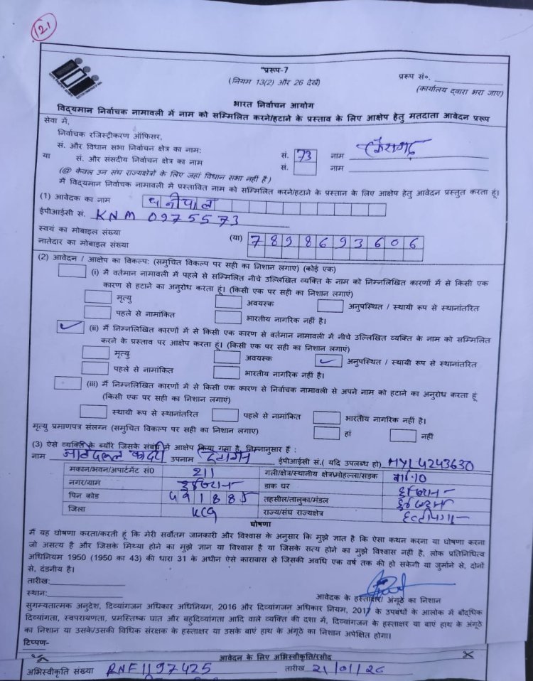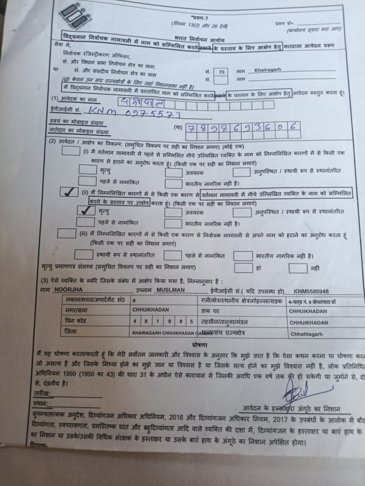 एस आई आर फार्म 7 के सहारे एक वर्ग को निशाना बनाने का आरोप